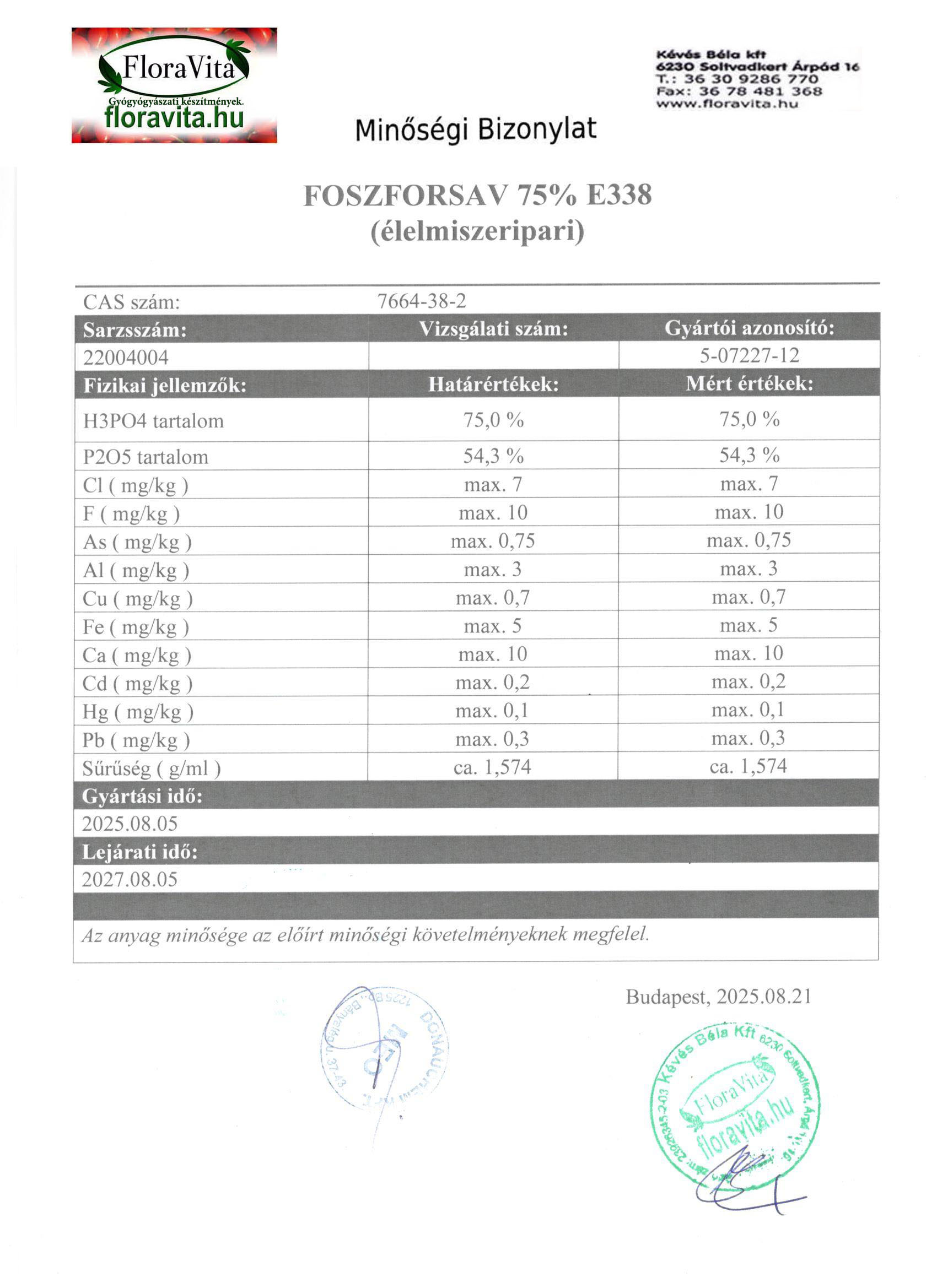 Specifikáció: http://svk.floravita.hu/spec/foszforsav75.jpg