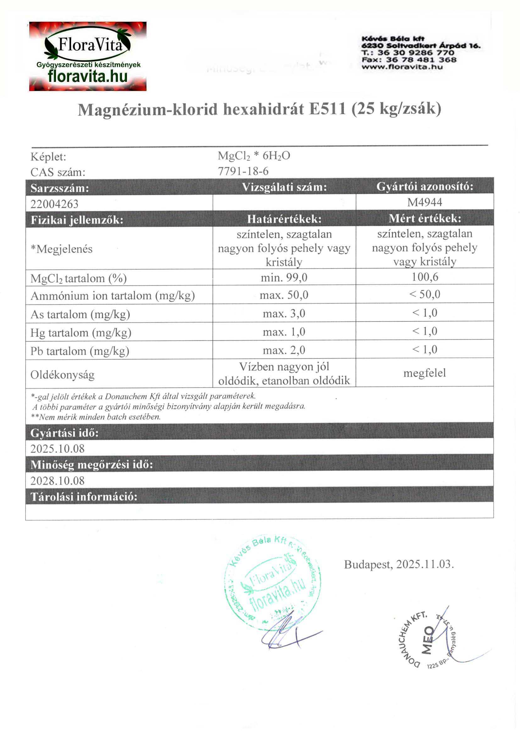 Specifikáció: http://svk.floravita.hu/spec/Magnezium-Klorid-Food.jpg