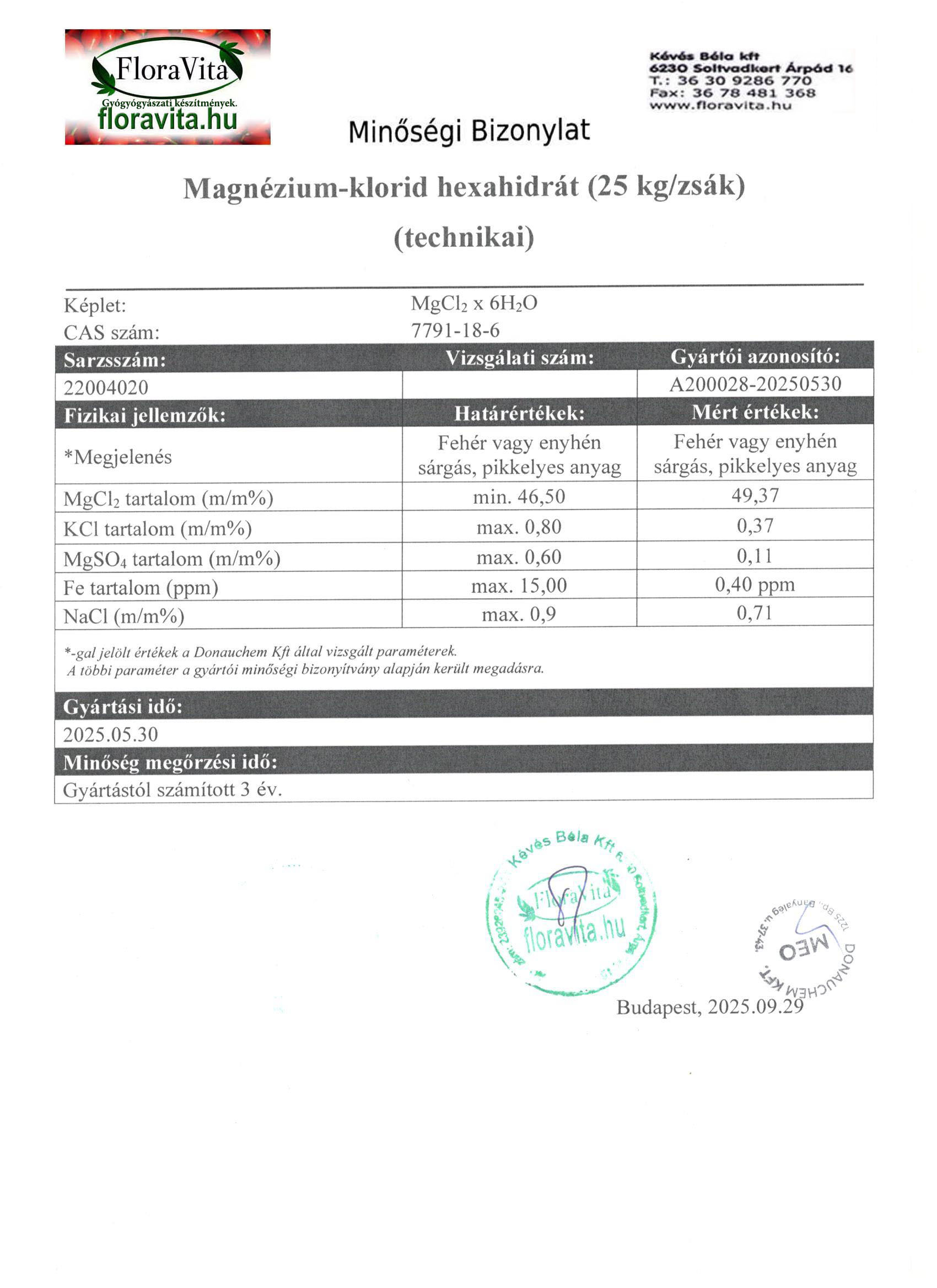 Specifikáció: http://svk.floravita.hu/spec/magnezium-klorid-technikai.jpg