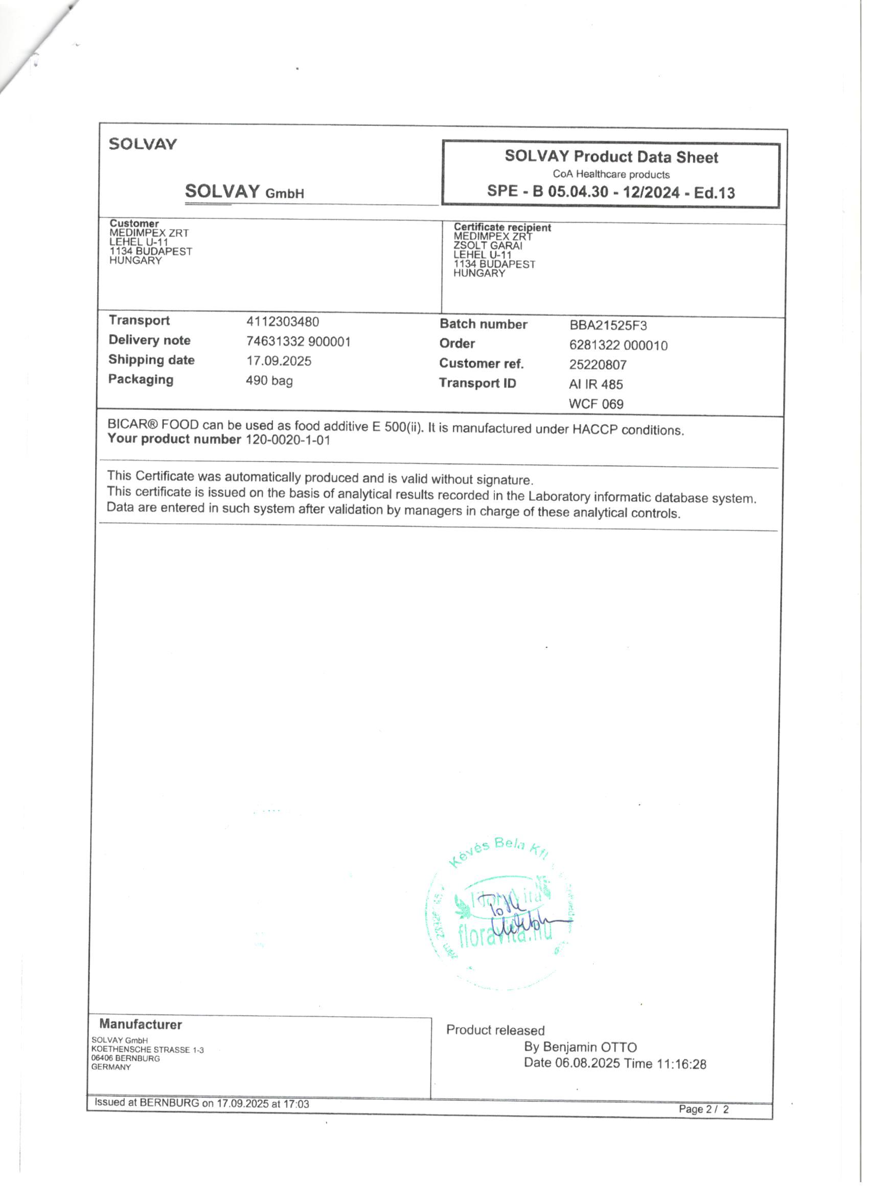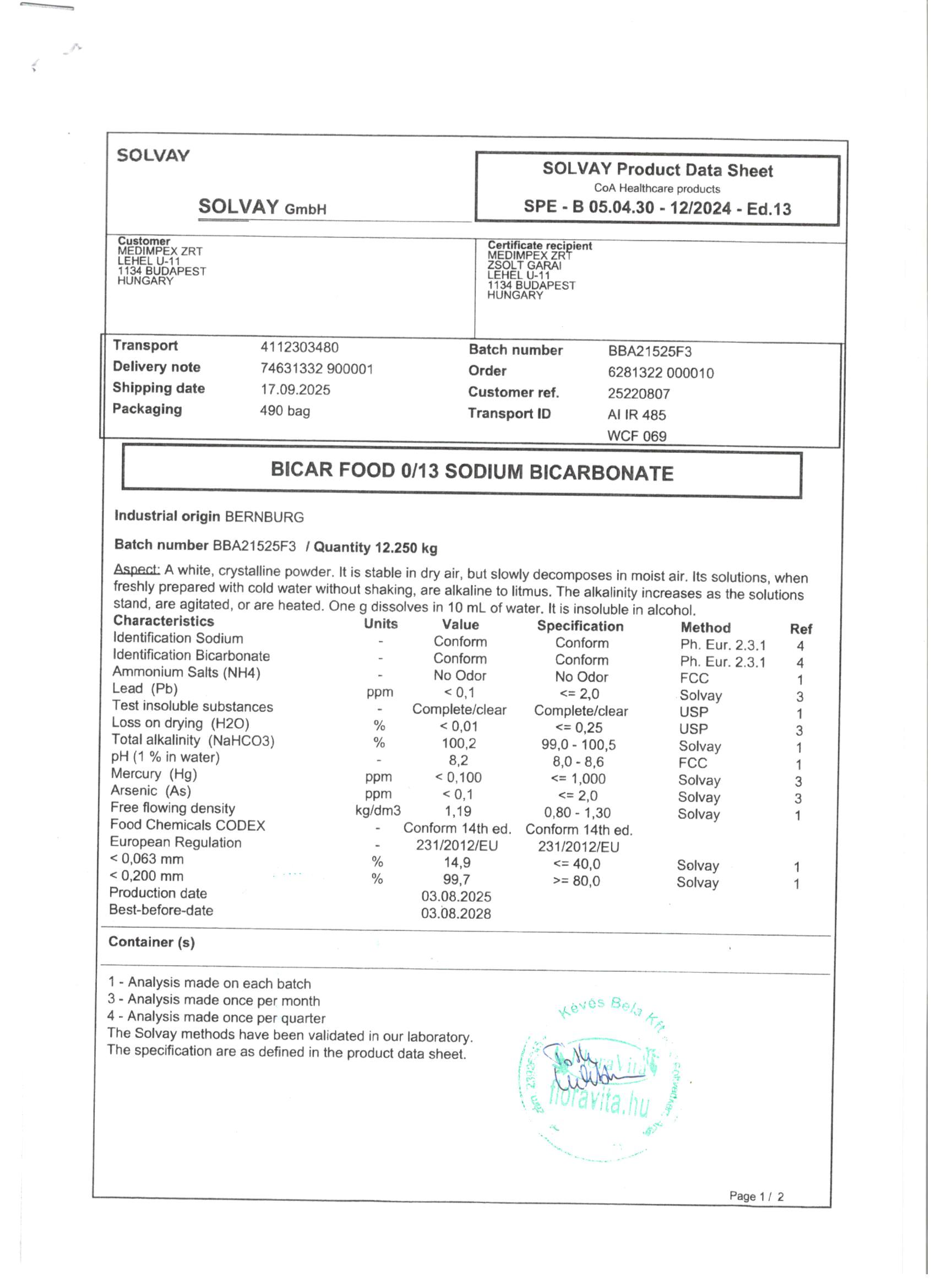 Biztonságtechnikai adatlap: http://svk.floravita.hu/BT/Szodabikarbona_FOOD.pdf